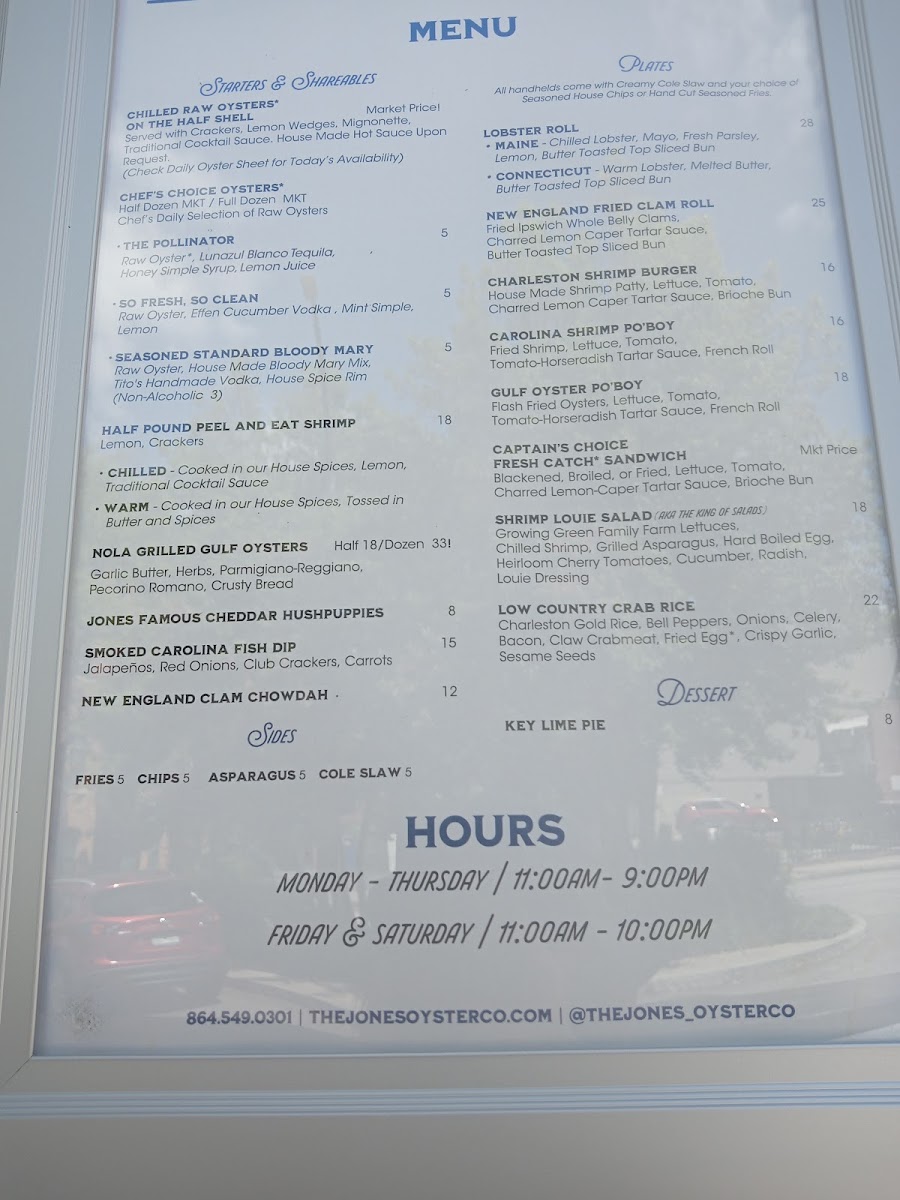 If you're in the mood for fresh, flavorful seafood, the The Jones Oyster Co. Menu is a must-try. Located at 22 E Court St in Greenville, SC, this local gem is all about bringing the best of the ocean straight to your plate. From succulent oysters to flavorful seafood dishes, there's something here to satisfy every craving. Whether you're grabbing a quick bite with friends or enjoying a relaxed evening out, the menu is packed with options that showcase the finest in coastal cuisine. Each dish is crafted with care, ensuring that every bite is as memorable as the last. Be sure to check out their seasonal specials for even more reasons to visit.